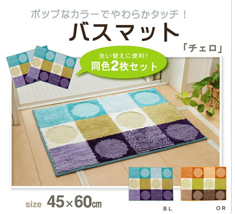 マット バスマット 吸水性抜群 洗えるバスマット 2枚組 カラー:ブルー